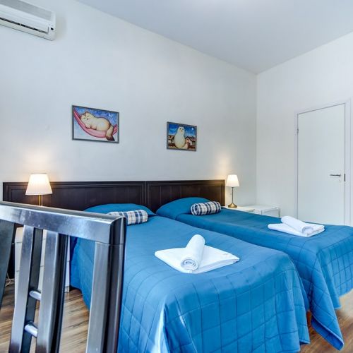 Уютные номера выполнены в светлых тонах. Все комнаты оснащены современной мебелью и техникой. Ванная комната укомплектована всем необходимым. Из окон открывается живописный вид на город. В непосредственной близости находятся продуктовые магазины и общественные заведения.